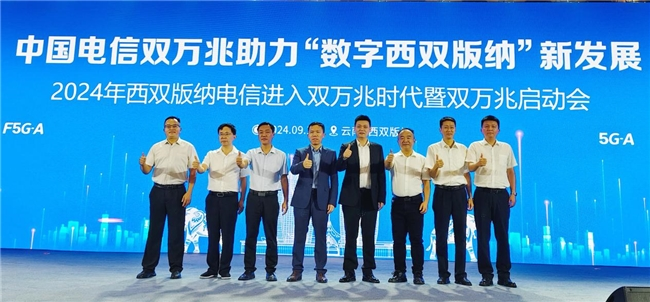 9月13日,中国电信云南分公司(以下简称云南电信)在西双版纳举行“中国电信双万兆助力“数字西双版纳”新发展发布会,来自西双版纳州工信局及相关州市单位、华为技术有限公司等行业专家齐聚一堂,共同见证云南电信双万兆启航。