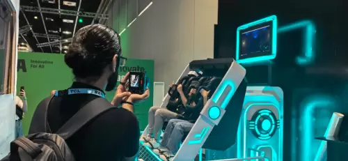 除了全息舱之外,飞天云动还展出了备受欢迎的VR360双人VR娱乐体验设备。这款设备以独特的双人旋转座椅设计和全方位的沉浸式互动体验,成为了展会现场的又一大亮点。用户佩戴VR头显后,即可与同伴共同进入虚拟世界,享受前所未有的冒险旅程。这种高度互动与沉浸式的体验方式,不仅为用户带来了极致的娱乐享受,更为元宇宙娱乐产业的发展注入了新的活力。