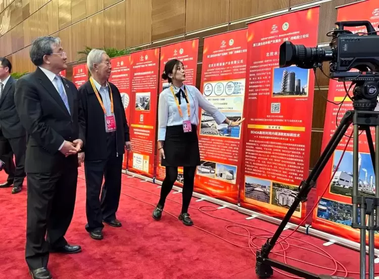 论坛现场展出了中国生态环保产业40年成就、绿色低碳技术成果以及环境界院士新理念、新成果、新愿景等。北控水务展示自主创新技术——BEAOA高效利用内碳源脱氮除磷技术。BEAOA是北控水务与中国工程院彭永臻院士合作研发的高效深度脱氮除磷新型处理工艺。立足国家战略和污水处理技术发展,BEAOA技术具有出水水质好、节能降耗、节省占地、实用性强、降低污泥产量的优势,达到脱氮除磷及节能减排的双重效果。该技术实现了产品化和产业化,BEAOA装配式蜂巢产品已在全国各地规模化应用。
