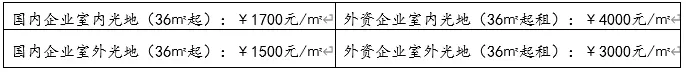 2、光地(不低于36 m²起租);配置:展出场地、保安服务、公共责任保险、无任何设施