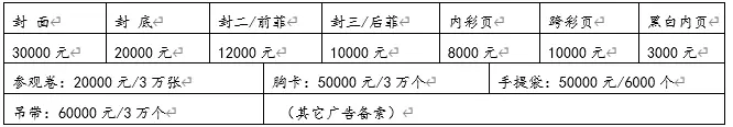 为了配合展商在展览期间宣传及让客户了解展商并在会后能与之沟通联系,组委会将精心编印大会会刊,规格:210mm×285mm竖版.大会会刊及其它广告收费标准