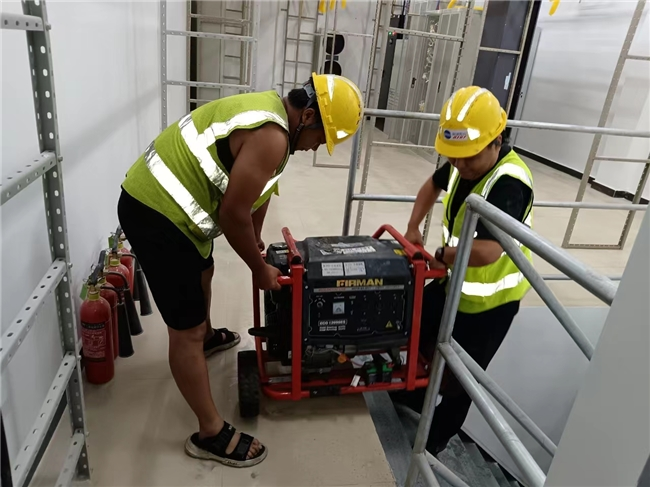 9月16日凌晨3点,宁波移动海曙分公司抗台指挥中心接到古林开诚工艺品基站停电的告警信息。古林网格网络抢修队伍在接到指令后,立即携带发电机、备用电池、防水布等专业设备,紧急奔赴受损站点。受天气影响,部分道路积水严重,临近机房车辆无法通行,抢修人员不得不徒步穿越泥泞小路,每台油机重达25公斤,每一步都充满了挑战与危险。受损站点机房进水严重,古林网格网络抢修队伍,抢修人员立即展开排水、清淤、设备检测等一系列工作并开动油机进行发电。经过20分钟的抢修,受损站点终于恢复了正常通信。