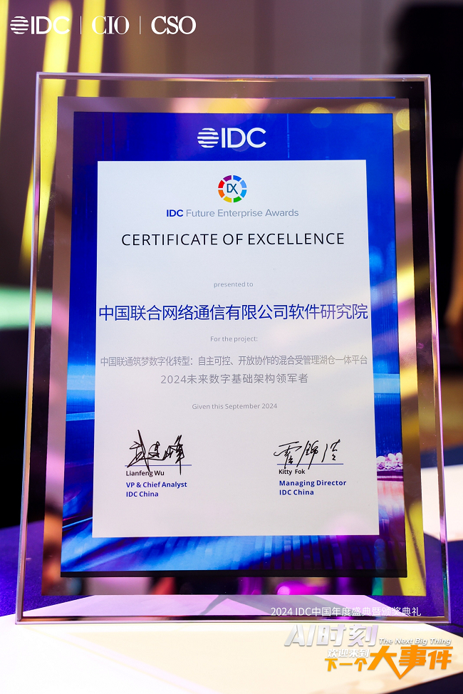 IDC 2024未来企业大奖:酷克数据携手中国联通打造湖仓一体平台