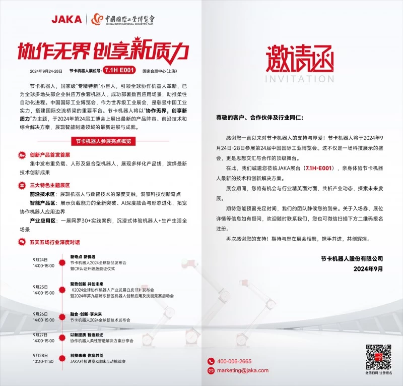 协作无界 创享新质力 | 节卡机器人诚邀您莅临2024中国工博会