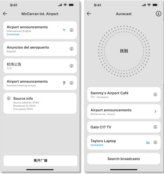 Smart Control应用程序还可以让那些原本不支持Auracast的设备实现Auracast连接,例如让使用iPhone手机的MOMENTUM真无线4代用户连接到机场登机口电视的Auracast广播等。