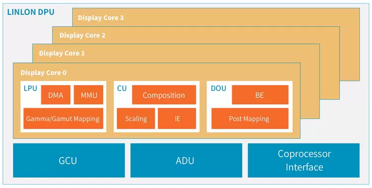 “玲珑”D8/D6/D2 DPU基于多核架构设计,支持按需灵活编程与配置,单核性能可高达每秒8K60帧,或能同时处理4路每秒4K60帧的实时显示输出,最多可支持16层的内容输入,有效促进系统资源的利用和管理。得益于与Arm®架构的深度协同,“玲珑”D8/D6/D2 DPU集成了Arm帧缓冲压缩(AFBC)技术,在确保整体系统方案的高性能和高画质的前提下,最大限度地节省带宽及功耗。其内置的Arm系统存储管理单元MMU-600/700中的转换缓冲单元(TBU)模块,可针对不同显示场景进行专门优化,以进一步降低系统访问延时。此外,“玲珑”D8/D6/D2 DPU还支持Arm TrustZone®媒体保护(TZMP)架构,实现了软硬一体化设计,能够为显示数据的安全性提供强力保障。