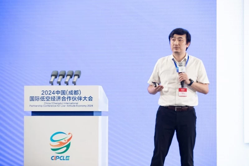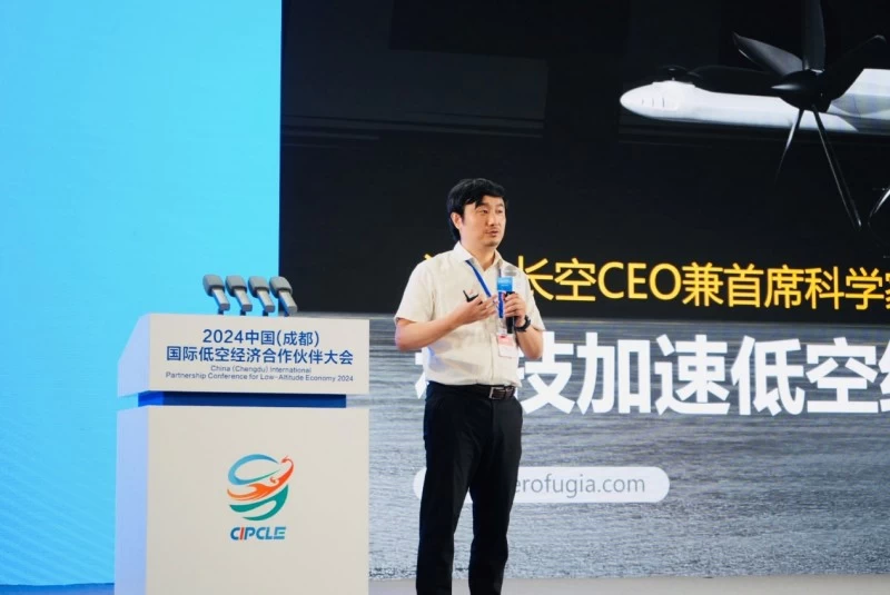 开幕式上,沃飞长空CEO兼首席科学家郭亮博士代表沃飞长空以本土低空经济城市级合作伙伴的身份,向现场领导、嘉宾推介成都领先低空装备厂商与运营服务商的产品研发能力,展现成都在新一代智能航空器的研发制造、飞行应用、运营管理和综合服务等方面取得的成绩,探讨低空经济行业发展的新技术、新趋势、新场景、新实践。