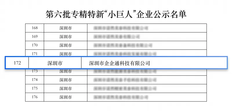 近日,深圳市中小企业服务局对深圳市第六批专精特新“小巨人”企业和第三批专精特新“小巨人”复核通过企业名单进行了公示。企企通成功入选为国家级“第六批专精特新小巨人”。