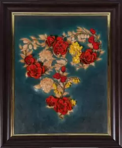 值得一提的是,恒源祥绒绣工作室原创作品《绽放绒花情》也亮相在本届博览会之中,《绽放绒花情》创意来源于北京2022年冬奥会和冬残奥会的颁奖花束,运用绒绣技艺制作了7朵立体红色月季和6朵平面玫瑰花苞,运用海派绒线编结技艺编织了波斯菊和铃兰,运用皮雕技艺雕刻了绣球、月桂、桂花、橄榄和枝干,相互串连组成了一个错落有致的立体“羊”字。作品在编织材质上用蕾丝线代替了传统的羊毛绒线,在传统平面绒绣绣法上创新出了立体绒绣,并在背部安装磁扣,可随意摘取,加强互动性。
