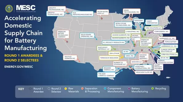 这是由美国能源部(DOE)的制造与能源供应链办公室(MESC)领导的项目的第二轮融资。该办公室在2022年宣布的第一轮融资中向14个电池材料和制造项目投入了18.2亿美元。
