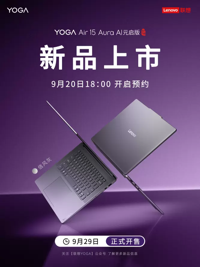 全球首款第二代酷睿Ultra处理器笔记本!联想YOGA Air 15 Aura AI元启版开启预售