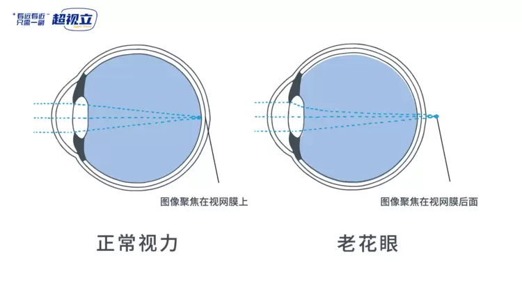 随着年龄的增长,晶状体会逐渐变厚并失去弹性。当您近距离视物时,它无法聚焦光线。同时睫状肌调节功能变差,在操纵晶状体方面也逐渐“力不从心”。最终导致晶状体难以再将光线正确聚焦到视网膜上,造成看书、玩手机等近距离视物时模糊重影、倍感吃力。通常需要仰起头、眯起眼睛、伸直胳膊等,让眼睛与阅读对象保持一定距离才能看清楚。