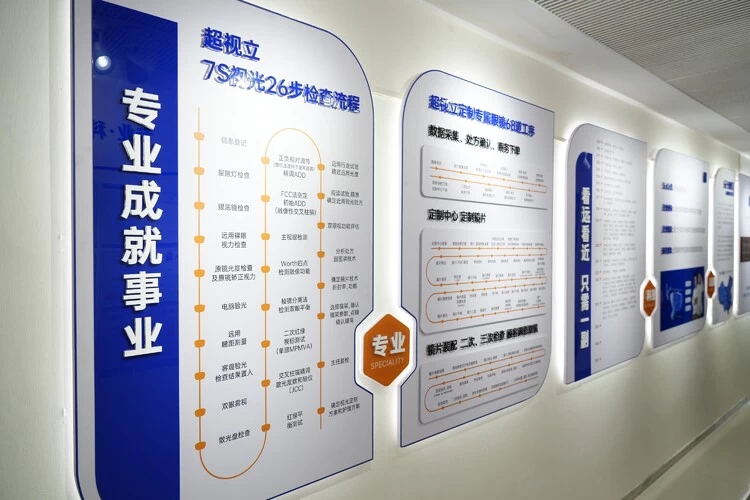 每一副超视立渐变焦远近一体镜,均需历经68道工序、15天左右才能交到顾客手中。首先专业验光团队运用专业设备,通过7S视光26步检查流程,多方面掌握顾客视力状况,再根据顾客的用眼需求、生活习惯、形象气质等匹配合适的镜片与镜架,一对一量身定制配镜方案,然后交付工厂进行生产。