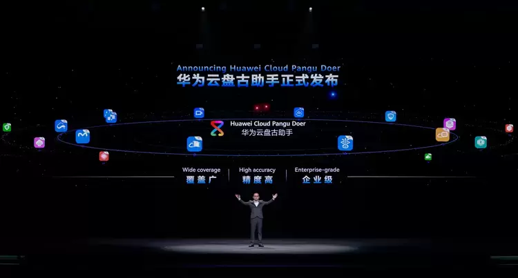 会上,张宇昕宣布华为云正式推出“1+N”的盘古助手体系:“1”指的是统一的华为云服务智能助手。它围绕企业在云上的规划、使用、维护、优化的全旅程,提供知识查询、信息查询、操作执行、优化分析等各方面的智能化服务能力,重塑了华为云与客户的交互模式。“N”指的是华为云针对企业用户工作流程中的高频共性场景,比如产品研发、数据分析、安全防护、办公协同等,将盘古大模型与各个领域积累的数据和经验相结合,通过AI赋能这些场景专用的云服务,提升相关人员的业务效率。