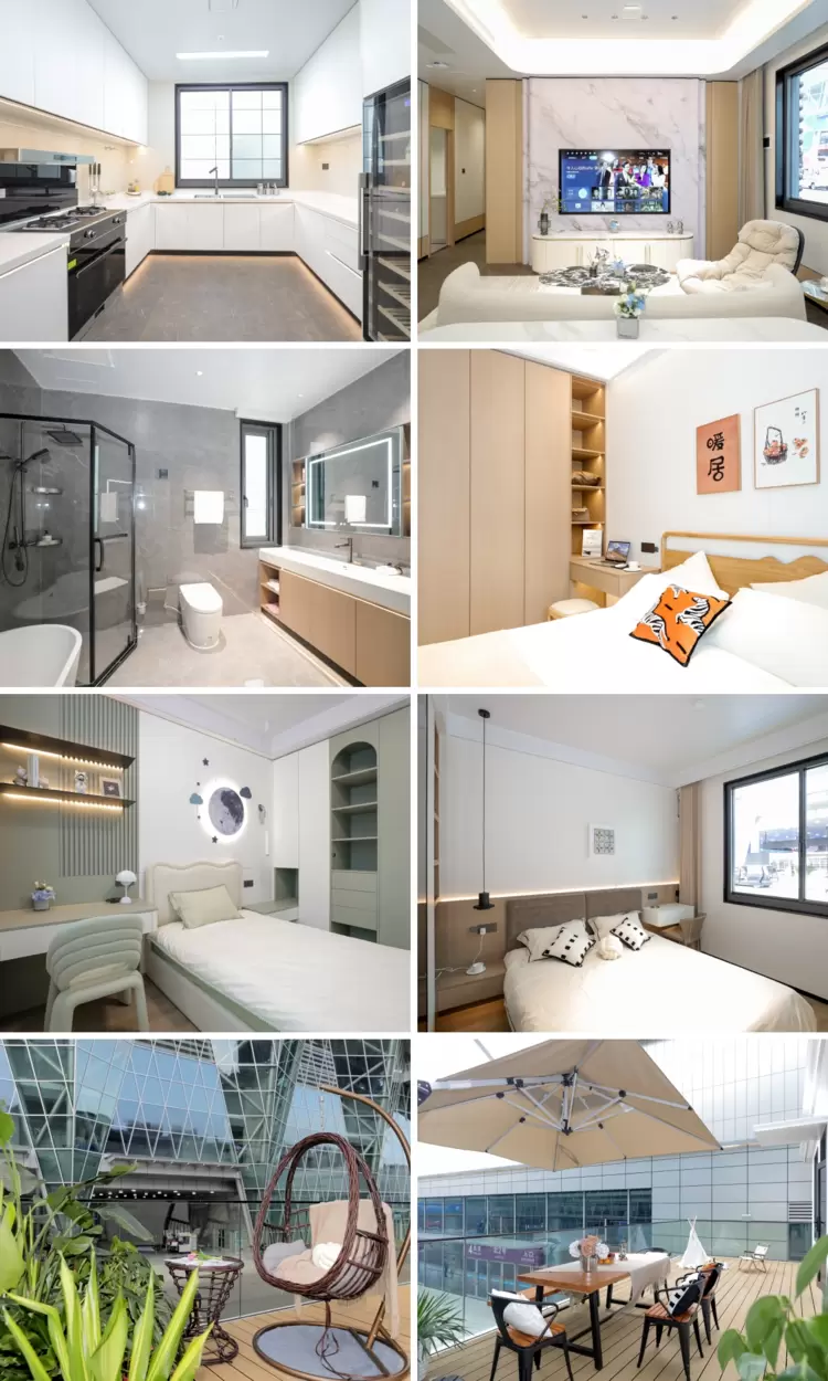 荣墅采用前沿的装配式建造技术,由8个独立舱体组合而成,实用面积约220㎡,拥有5室2厅4卫2露台的宽敞空间。上下两层布局,一楼实现餐客一体化,南北通透,动静分区,配备厨房、洗储间、老人房及独立卫生间;二楼设有儿童房、多功能健身房、舒适主卧,并赠送两个超大露台,满足家庭休闲娱乐需求,完美适应五口之家或三代同堂的生活场景。