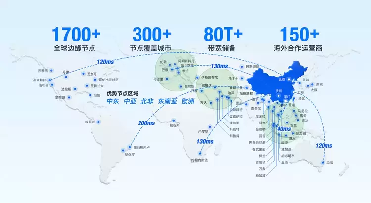 白山云是国内最早布局并深耕海外的边缘云服务企业之一,已建立遍布全球的边缘网络,在海内外300+城市部署超过1700个边缘节点,并与海外150+主流运营商深度互联合作,可以在全球范围内任意位置实现高速互联,为用户提供一致性体验。