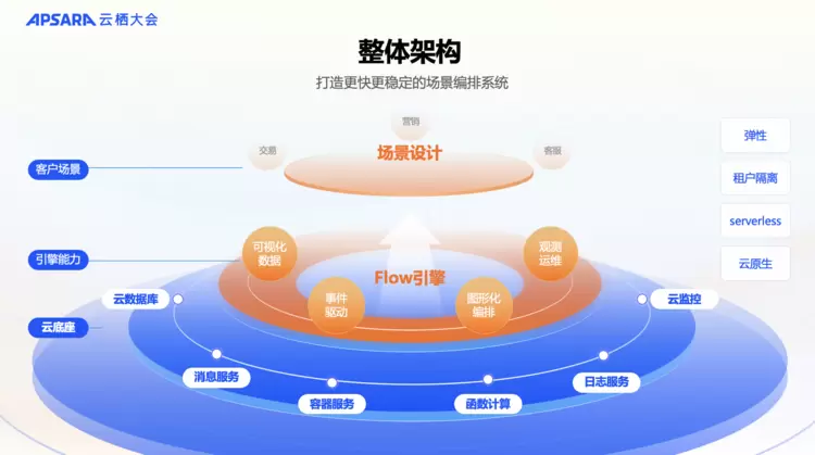 通过对技术架构和功能特点的介绍,阿里云通信技术专家李正冬说明了Chat Flow如何“将便利留给客户,将复杂留给自己”:Chat Flow建立在阿里云之上,充分利用云原生在Serverless、租户隔离、弹性扩展和免运维等方面的优势,具备丰富的数据资源和强大的引擎能力。在架构方面,Chat Flow分为了管理和运行两大模块,能够保证不同使用场景下的效率和流畅度。