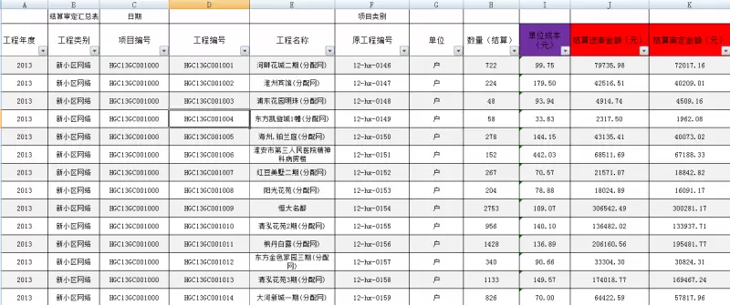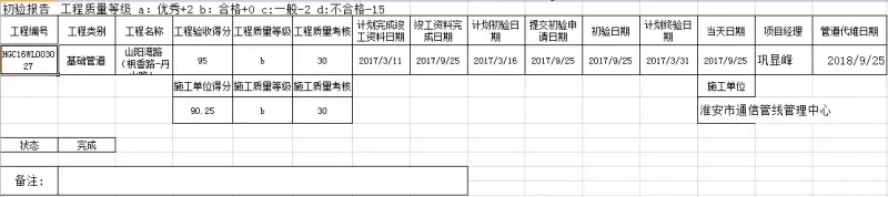 查询报表:包括了资料送审的查询,结算汇总表、工程进度表、完工考核表、工程初验考核表、工程开工考核等。