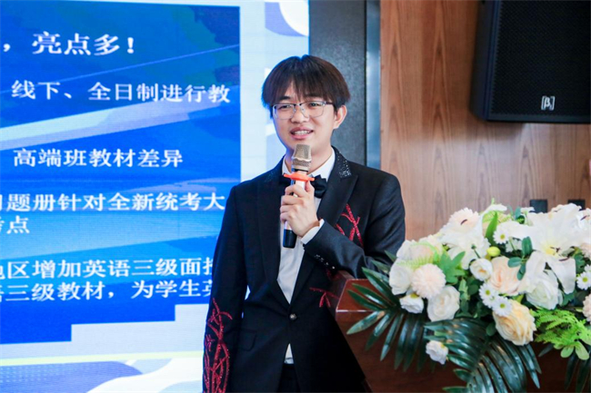 在读优秀学员代表左逸现场分享了他的学习心得。他表示,刚入学时,曾感到迷茫和不安,但在好老师升学帮积极向上的学习氛围中,在老师们无微不至的关怀与指导下,他逐渐找到了学习的方向与动力,并鼓励所有在读学员努力不懈,用实际行动书写属于自己的辉煌篇章。
