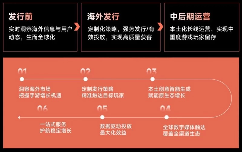 钛动科技云集资深游戏出海服务团队,整合全球流量和服务资源优势,通过强大的技术保障和产品,为出海游戏发行商提供出海一站式解决方案。