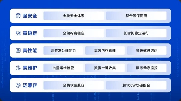 统信UOS服务器版汲取国内外主流社区技术栈优势,深入技术底层结合国内外设计标准与规范以及各类用户业务应用需求,积极开展技术创新,全面支持国内外主流CPU架构和处理器厂商,在各种应用环境中,满足强安全、高稳定、高性能、易维护以及泛兼容等要求,是一款构建信息化设施环境的基础软件产品。