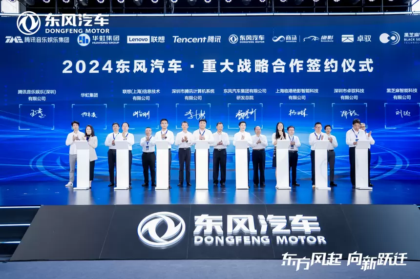 签约仪式在东风汽车全球创新中心举行,东风汽车集团有限公司董事长、党委书记杨青,东风汽车集团有限公司总经理、党委副书记周治平、东风汽车研发总院院长杨彦鼎,以及腾讯音乐娱乐集团副总裁刘宪凯等多位嘉宾出席。