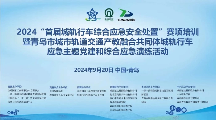 9月19日-21日,由一带一路暨金砖国家技能发展联盟和青岛市城市轨道交通产教融合共同体主办,成都运达科技股份有限公司、山东职业学院、青岛地铁运营有限公司、青岛青铁教育咨询服务有限公司联合承办的2024“首届城轨行车综合应急安全处置”赛项培训及青岛市城市轨道交通产教融合共同体党建和应急演练活动在青岛举行。