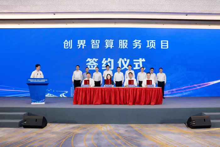 中国移动江苏公司苏州分公司、吴江汾湖高新区管委会、北京万界数据科技有限公司、苏州创元集团四方签约了创界智算服务项目。重点发展建设长三角地区领先的人工智能算力服务平台,引领吴江AI科技,赋能产业未来,共创智慧新篇。