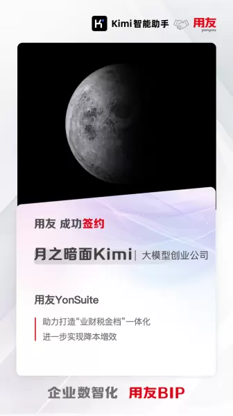 领跑AI时代!月之暗面Kimi携手用友YonSuite,迈向数智新征程!