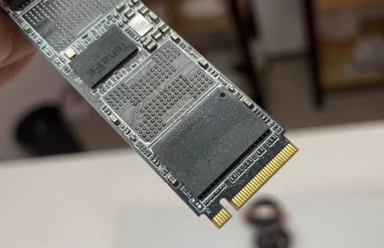 PCB板正面布置一颗主控芯片,两颗闪存芯片,单颗512GB组成1TB容量。采用了无物理缓存的设计方案,搭载HMB和SLC Cache缓存技术,以提升硬盘的I/O性能。