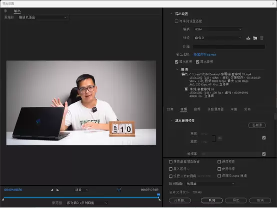 高频内存在生产力上表现如何呢?我们使用大家常用PR软件来导出同一个视频工程文件,导出格式H.264,总大小709MB,然后记录导出的时间。