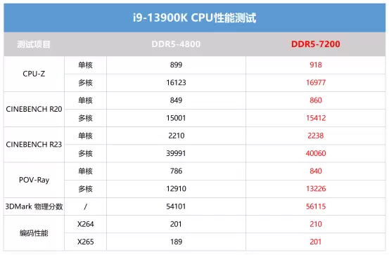 这里我们跑了7款常见的CPU测试软件,主要考验CPU的基准性能。可以看到,7200MHz的高频助力下,i9-13900K性能得到不同程度的提升。