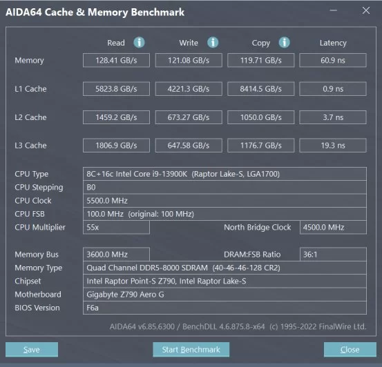 AIDA64内存性能基准测试: