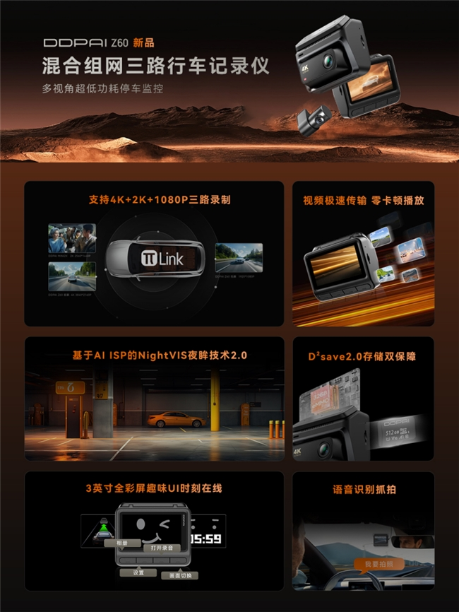 9月23日,智能行车记录仪领域的领先品牌盯盯拍的最新力作,Z60混合组网三路记录仪正式上市,该产品凭借自主研发的πLink技术,颠覆传统行车记录仪的视角限制,为用户带来前所未有的数字影像体验与安全保障。