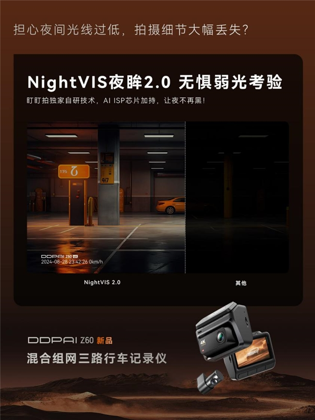 值得一提的是,在全新一代AI ISP图像处理器芯片的强力支持下,盯盯拍自研NightVIS夜眸技术2.0能够智能分析弱光环境下的光线条件,为车主提供强大的停车监控夜视效果,自动调整曝光、对比度等参数,从而在保持画面明亮度的同时,显著提升清晰度。