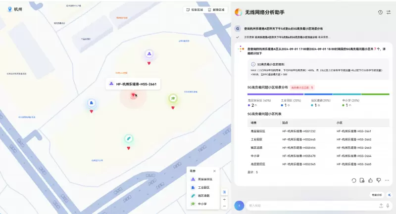 无线网络分析助手帮助网络优化工程师进行个性化网络实时分析与报告生成。利用通信大模型,实时学习和处理杭州现网2万台基站的通话统计、配置等数据,帮助网络优化工程师进行区域网络性能的管理,并支持对网络优化问题的深入定位。只需通过自然语言对话或简单的区域框选,就能生成个性化的网络分析报告,生成报告的时间可缩短至1分钟以内,相比原优化报表的构建时间减少90%以上,使网络管理变得更加简单、高效。