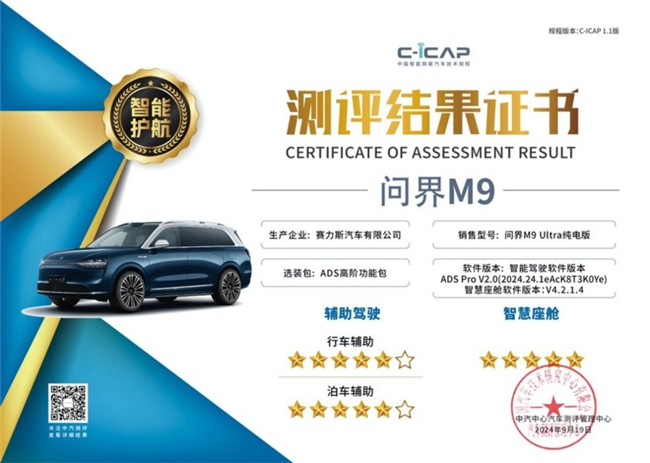 问界M9获C-ICAP“五星+”认证 智驾体验活动助力智驾技术发展