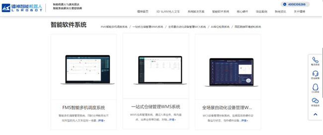 除了硬件产品的展示,官网还详细介绍了与3D SLAM无人叉车配套的系统软件。这些软件不仅优化了无人叉车的运行效率,还实现了多机调度、远程监控、数据分析、故障预警等功能,为客户打造了一个全链条、智能化的智能制造及物流管理体系。
