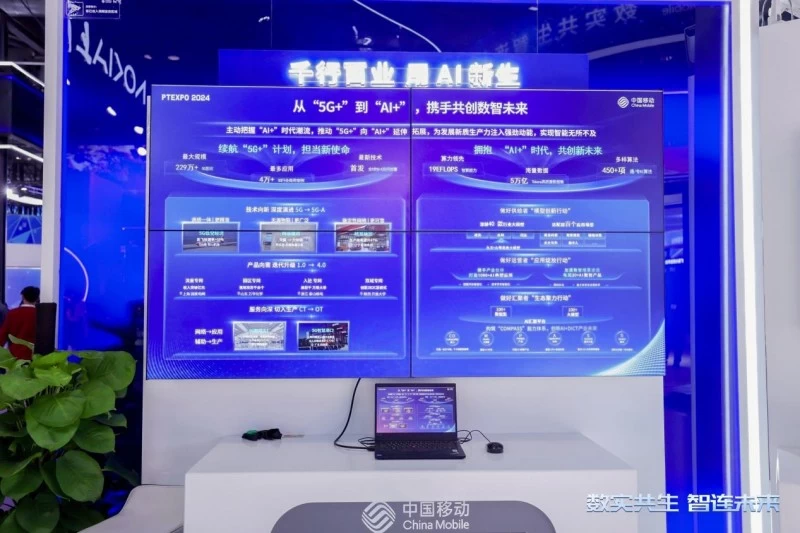 自2019年5G牌照发放以来,中国移动全力推进“5G+”计划,取得显著成就,建成全球最大5G网络,基站超220万,全球占比超三分之一,并率先商用5G-A。在此基础上,中国移动正积极推动“5G+”向“AI+”的延伸拓展,旨在通过“AI+”创新激发新质生产力。