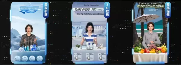 此外,“有言”还支持三步打造线上发布会,为新产品、新功能及新业务造势,迅速吸引市场关注。展会现场,大屏循环播放的精美视频结合数字人现场互动,进一步提升了品牌曝光度和观众参与度。而海外直播平台的AI直播功能,则实现了全天候、不间断的直播营销,助力企业高效获客。