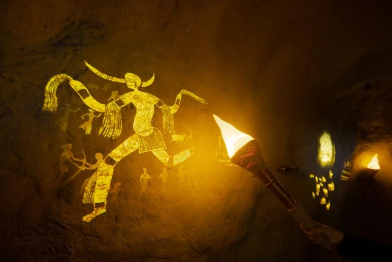 互动体验“史前岩画”:利用现代数字科技,参观者仿佛置身远古洞穴,通过火把与岩画互动,激活并探索世界各地的代表性岩画图案。