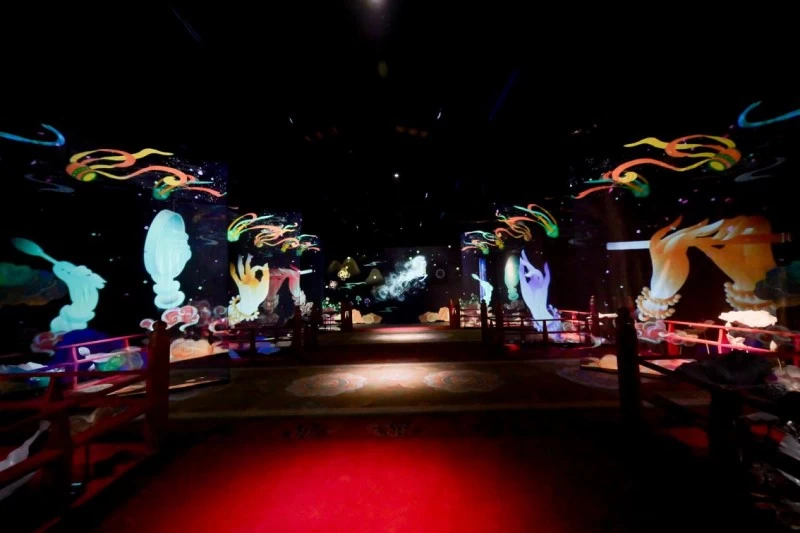 开馆即推出常设展《灵境·未来灵感世界》沉浸式光影艺术展、特展《敦煌超宇宙》数字艺术展,通过AIGC、8K超高清、交互传感、VR、裸眼3D等数字技术,融合中国传统文化和西方优秀文化IP,打造沉浸式、参与式的数字艺术馆,同时融合文创消费、轻餐饮、亲子活动和公教研学等多种功能,为公众提供丰富的数字时代文化新享受。