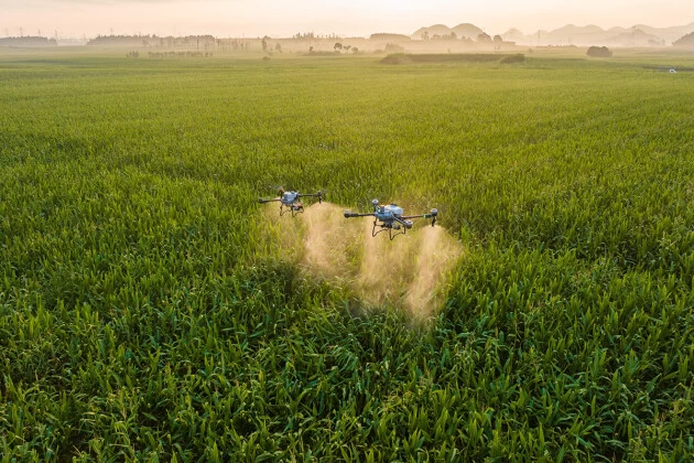 农业无人机因其不受地形限制,不轧苗,飞行平台具备好操作、图传稳定等特点,可全程运用于玉米植保环节,能够有效解决玉米中后期施药难、病虫害不好防治等问题,避免作物减产。