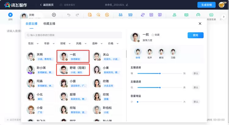走进游戏与赛事的世界,野哥、皓宇的慷慨激昂让游戏战场跃然眼前,一航的专业激情则让赛事直播扣人心弦。讯飞智作 AI 配音,让每一次游戏体验都仿佛置身其中,每一场赛事直播都成为难忘的激情瞬间。