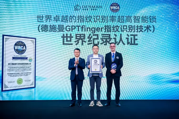 WRCA 是全球及中国境内唯一获批相关世界纪录认证商标的机构,WRCA世界纪录认证管马克西姆在现场强调:“当WRCA证书授予企业或机构时,就代表他是该领域的最高水平。德施曼智能锁领先行业,首创GPTfinger指纹识别技术,让智能锁进入GPT算法识别时代,解决了少数人群的指纹识别难题。”
