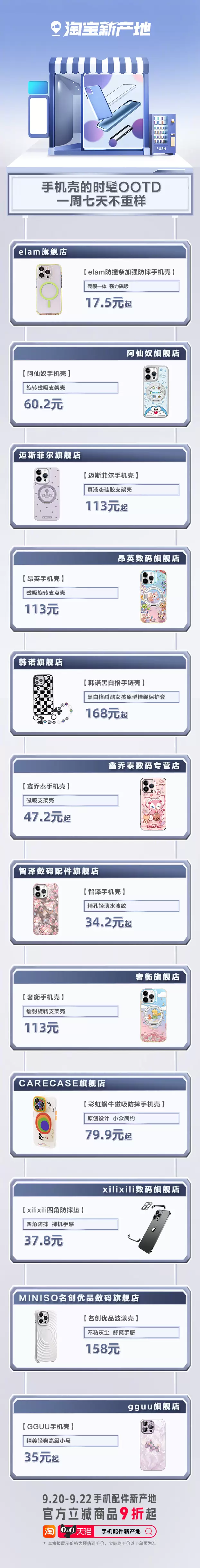 聚焦手机壳品类,一大批产业带商家借助淘宝新产地的舞台实现了营销和销售的双突围,作为商家代表,迈斯菲尔与迪士尼联名的多款产品销售火爆,列入年轻消费者的“手机壳清单”中,另一家CARECASE,目前是淘宝原创手机壳店铺榜热销榜TOP1,一款动物手机壳已售出超3万件。在iPhone新机入门配件领域,不少商家推出了更有性价比的高清膜、无尘防窥膜,售价最低至8元,同样销售火爆。