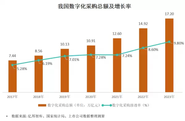 当各行各业都在苦思“增量从哪里来”的时候,有一个市场的增长显得格外“突兀”。 中国物流与采购联合会公共采购分会发布的《2024数字化采购发展报告》显示,2023年我国企业数字化采购总额为17.2万亿元,同比增长15.2%。