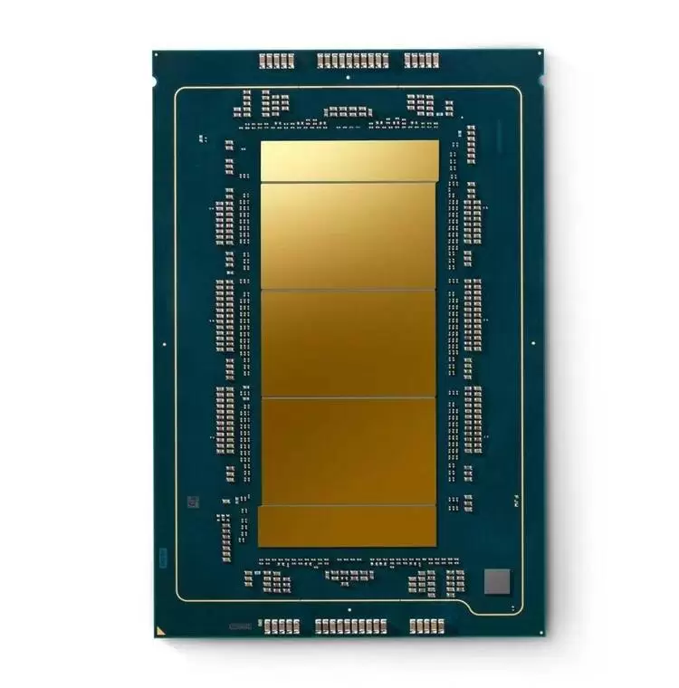 第五代至强可扩展处理器使用2颗芯片封装而成,所使用的EMIB数量明显减少,相应地也节约了芯片面积。虽然内核数量略有增加,但也损失了UPI、PCIe的数量,也不再能够搭配HBM。