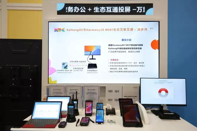 深开鸿作为华为坚定合作伙伴和OpenHarmony核心共建单位,其自主研发的国产操作系统KaihongOS已经成功跨越生态界限,与HarmonyOS Next实现了无缝互联互通。不仅彰显了与HarmonyOS Next设备及应用的广泛兼容性,更以其分布式技术的强大能力,提供了一键组网、精准服务的解决方案,让多设备间的协同工作变得前所未有的流畅与高效。