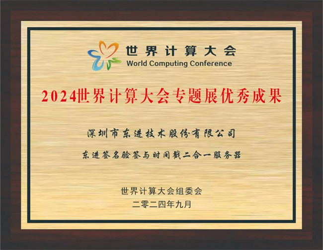 “2024世界计算大会专题展优秀成果奖”旨在集中展示绿色智能计算及应用领域的先进趋势和前沿成果,其评选结果因“广征集、严评选、高影响”备受业界关注。东进签名验签与时间截二合一服务器成功入选,不仅是对东进技术创新能力的认可,也进一步巩固了东进技术在网络安全领域的领先地位。